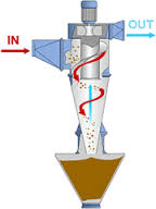 當含塵氣流由進氣管進入旋風分離器時,氣流將由直線運動變?yōu)閳A周運動。旋轉氣流的絕大部分沿器壁自圓筒呈螺旋形向下沿錐體流動。含塵氣體在旋轉過程中產(chǎn)生離心力,將重度大于氣體的塵粒甩向器壁,沿壁面下落到底部卸料閥排出,將塵粒從氣體中分離出來的一種氣固分離裝置。