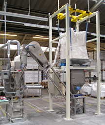 另一種是大袋開袋站是靠自身攜帶的起重設(shè)備將大袋(噸袋)吊裝到卸料機的機架上,不需用外界的幫助。